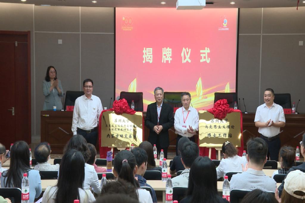 活动中,冯银虎、方世南为“苏州大学威尼斯WNS9778生态文明理论与绿色发展研究中心内蒙古研究基地”揭牌。田芝健、王文华为“苏州大学马克思主义理论博士工作站”揭牌。