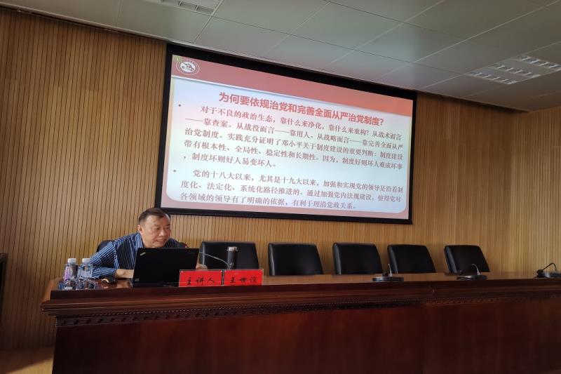 王世谊教授以“遵守党内法规与完善全面从严治党制度”为主题,从深度认识党内法规建设与完善全面从严治党制度的重要意义、深入洞察党内法规建设和完善全面从严治党制度的实践要求、持续通过依规治党不断完善全面从严治党的制度体系等三个方面对从严治党做了深入系统地解读。通过学习,学院广大师生对遵守党内法规与完善全面从严治党制度有了更加深刻的认识和了解,使广大师生受益匪浅。