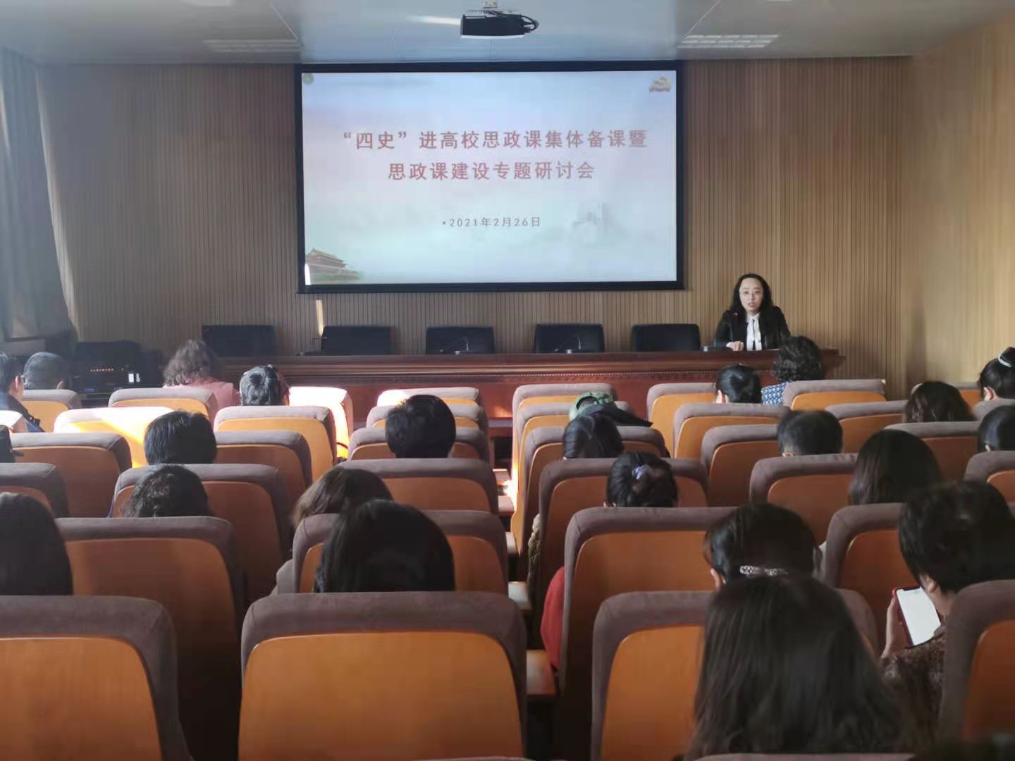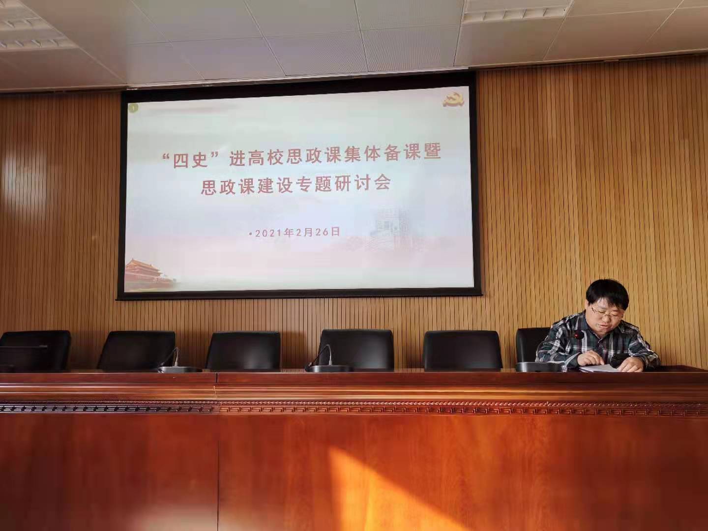 为深入学习习近平总书记在党史学习教育动员大会重要讲话精神,按照“学史明理、学史增信、学史崇德、学史力行”的总体要求,遵循“学党史、悟思想、办实事、开新局”的指针,从中国共产党百年丰厚历史进程中汲取马克思主义理论科学力量、马克思主义中国化奋进实践力量和中国共产党精神谱系与价值追求,以昂扬姿态奋力开启全面建设社会主义现代化国家新征程,以优异成绩迎接建党一百周年,立足高校思政课作为落实立德树人根本任务的时代使命,深入推进我校思政课的质量建设与创新改革,2月26日下午,威尼斯WNS9778举办“四史”进高校思政课集体备课暨思政课建设专题研讨会。研讨会上,各教研室主任分别结合“四史”融入课程建设、推动思政课建设创新改革进行了专题发言。威尼斯WNS9778全体教师参加会议。