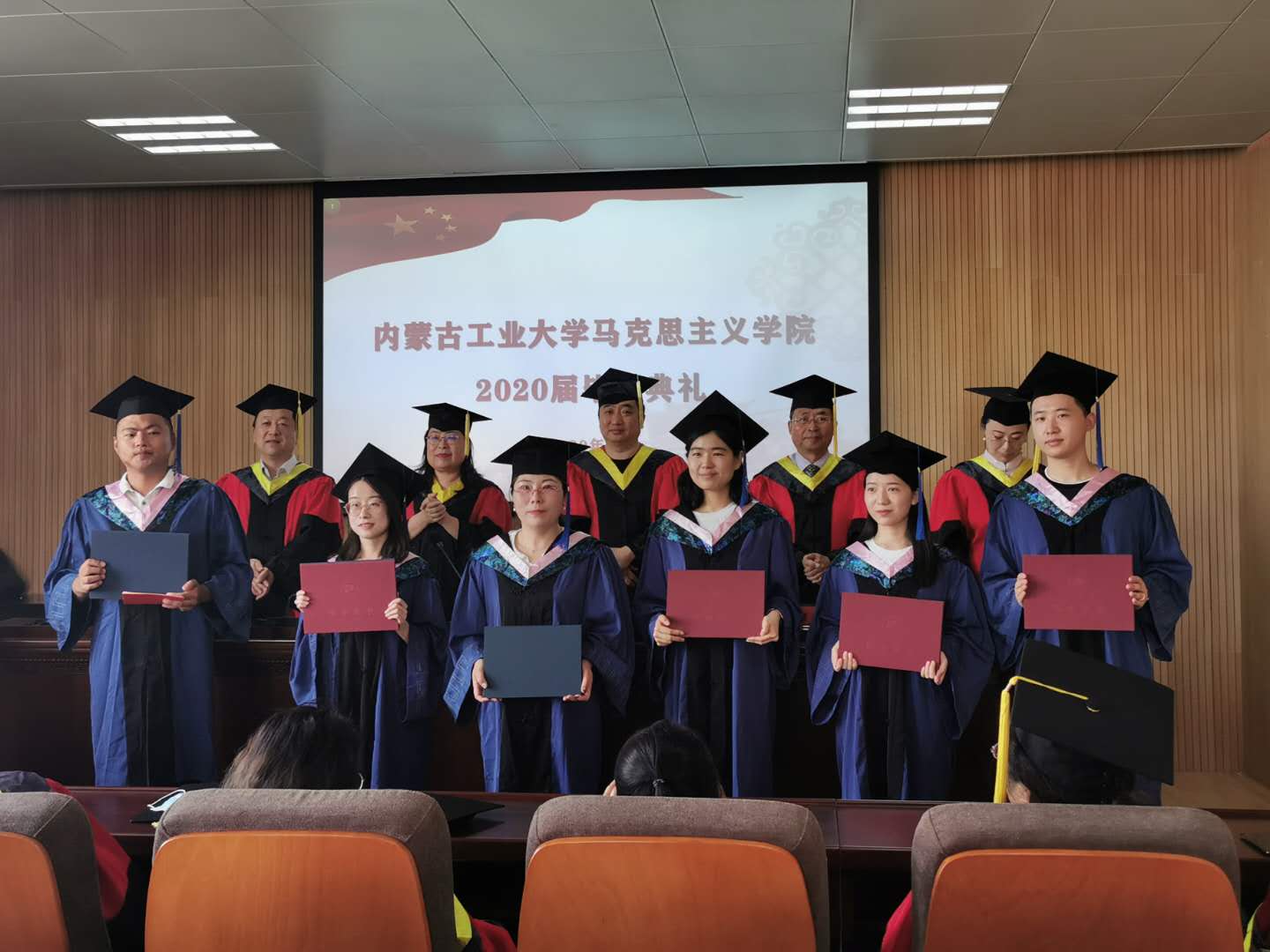 学院党总支书记王文华,院长马军,副院长宁琳琳,院学术分委会主席、思想政治教育专业负责人、研究生导师李慧,科技处副处长、马克思主义基本原理专业负责人、研究生导师布和朝鲁出席毕业典礼并在主席台就座,典礼由宁琳琳主持。学院其他研究生导师、毕业生等参加毕业典礼。