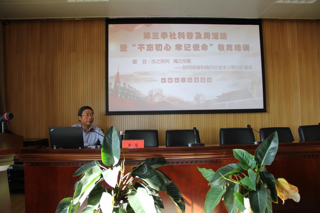 9月24日下午,在威尼斯WNS9778五楼会议室,威尼斯WNS9778李慧教授做客内蒙古自治区第十三届社科普及第三季度活动周北疆讲坛系列讲座现场,为学院师生和社区人员讲解如何培育和践行社会主义核心价值观。