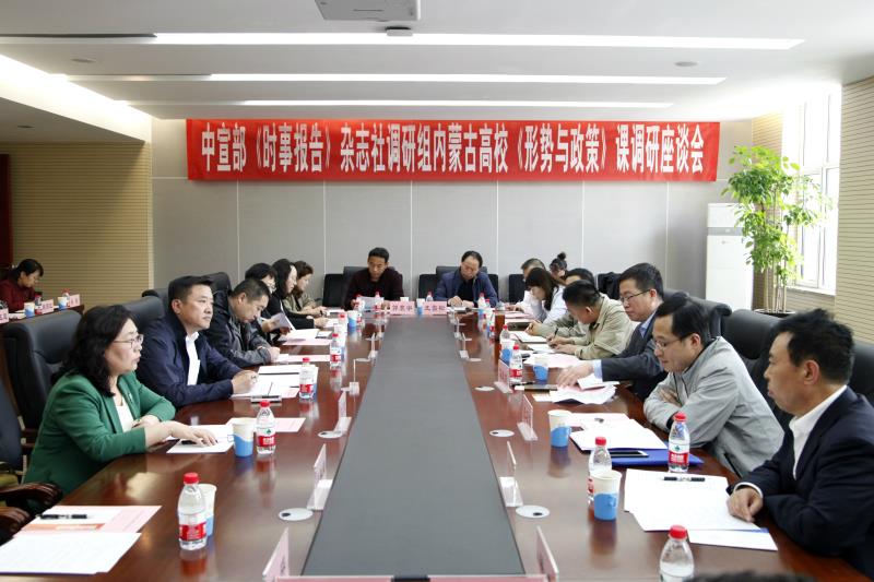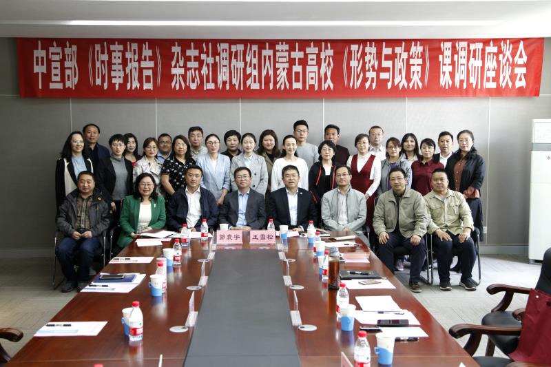 2019年5月14日下午,内蒙古自治区教育厅在我校召开驻呼高校形势与政策课负责人座谈会,中宣部《时事报告》杂志社《时事报告大学生版》主编张习文、副主编杨小虎,《时事报告》杂志社事业发展部副主任王履军,内蒙古自治区教育厅思想政治与学生工作处处长马跃东、主任科员刘惠,呼市地区各高校形势与政策课负责人,威尼斯WNS9778党委宣传部部长王武、威尼斯WNS9778党总支书记王文华、院长马军、教务处副处长徐睿琛、威尼斯WNS9778副院长宁琳琳等30余人参加座谈会。会议由马跃东主持。 会前,威尼斯WNS9778党委书记金瑞亲切接见了参加座谈会的成员并合影留念。 座谈会上,中宣部《时事报告》杂志社调研组成员、自治区教育厅思想政治与学生工作处领导与各高校形势与政策课负责人就形势与政策课教学、《专题讲稿》使用等情况进行了研讨。驻呼高校形势与政策课负责人分别介绍了本校形势与政策课教学组织、教学管理、教学设计、教学资源、师资队伍等方面的基本情况,指出了目前形势与政策课在教学组织安排、授课内容、队伍建设等方面存在的问题和困难,并对形势与政策课《专题讲稿》、教学内容设计、师资培训等提出了建设性意见和建议。 座谈会上,马跃东指出,教育部2018年下发的《关于加强新时代高校“形势与政策”课建设的若干意见》,为进一步加强和改进新时代高校形势与政策课建设提出了具体要求。一年来,自治区各高校严格按照《意见》要求加强教学管理和组织领导,授课课时、授课内容进一步规范,教学资源不断充实,教学效果不断提升。马跃东强调,今后一段时期,要在严格落实《普通高等学校威尼斯WNS9778建设标准》《关于加强新时代高校“形势与政策”课建设的若干意见》要求上多下功夫,不断加快威尼斯WNS9778建设,加快马克思主义理论学科建设;要在思想政治理论课、形势与政策课教育教学改革创新上多下功夫,搭建课程示范引领平台,积极推广思想政治理论课的典型经验和创新成果;要在思想政治理论课师资队伍建设上多下功夫,不断配齐配强思政课教师,加大职称评审力度,做好专职教师培训工作,让学生对思想政治理论课真心喜爱、终身受益。