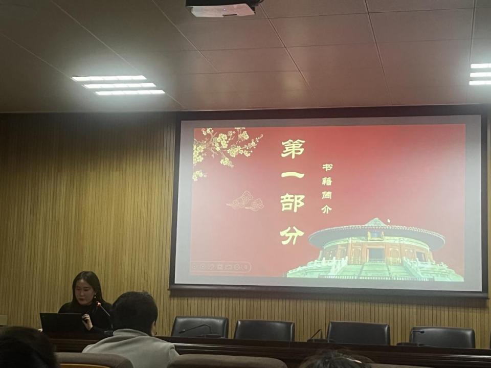 王佳伦同学分享了阅读《近代中国社会的新陈代谢》这本书的心得体会,她从社会结构、社会生活、社会意识等方面带领大家学习了中国近代社会的演变历程。她的分享让大家深刻感受到文明的交流与互鉴对于推动社会进步的重要意义。