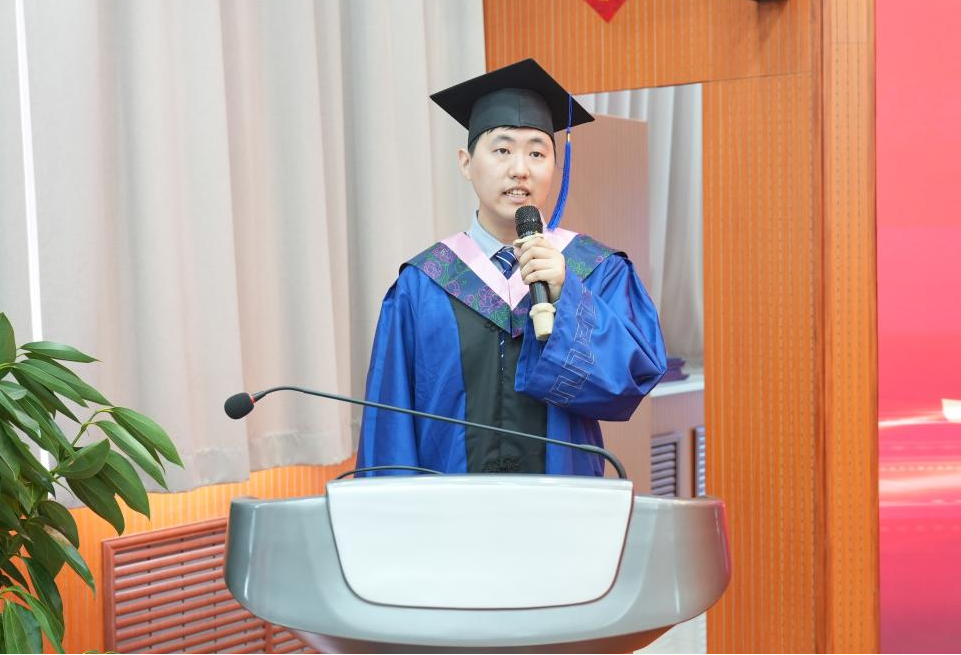 研究生指导教师代表韩浩磊老师在发言中深情回顾了2025届毕业生在校期间的拼搏历程和师生共同走过的校园岁月,见证每一次突破与成长。离别之际,韩老师送上诚挚祝福,祝愿大家在人生之海破浪前行,书写辉煌篇章。