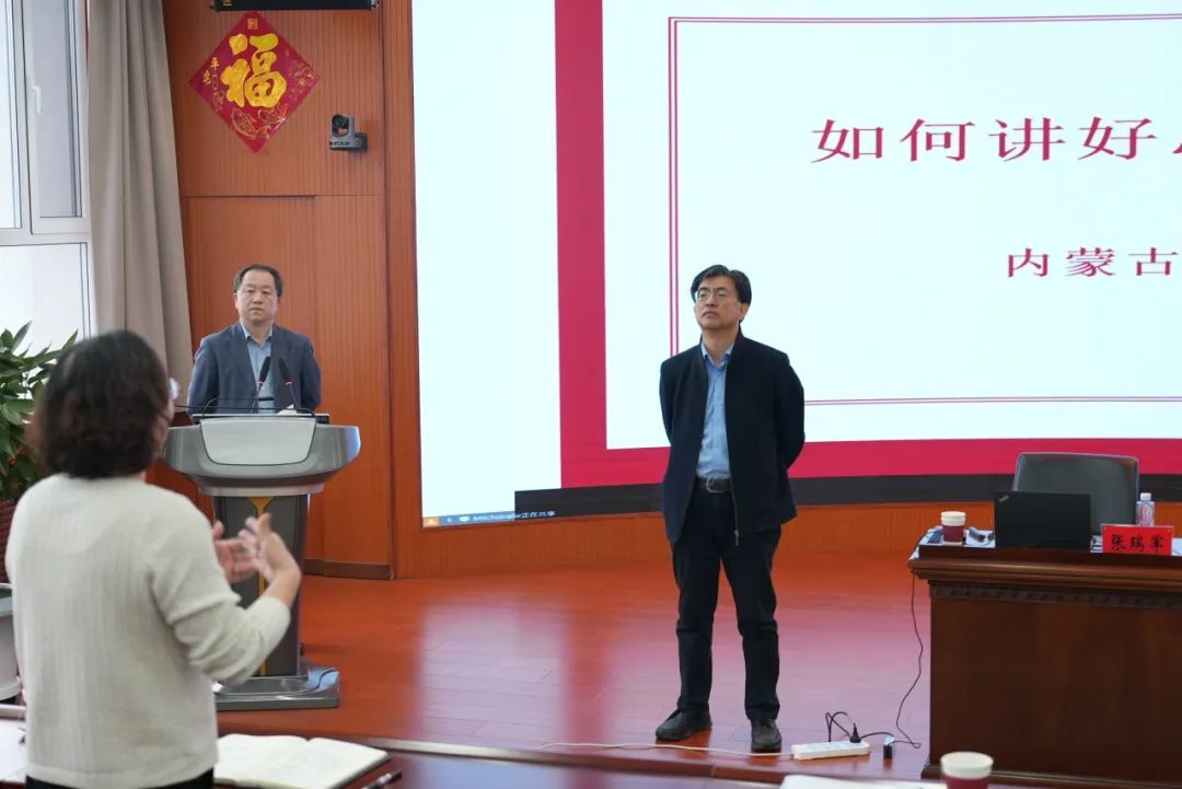 2025年4月18日,威尼斯WNS9778举办题为“如何讲好思政课的几点想法”的专题讲座,讲座邀请内蒙古师范大学中共党史与党建学院院长、教授、博士生导师张瑞军主讲,布和朝鲁主持讲座,学院全体师生参加讲座。