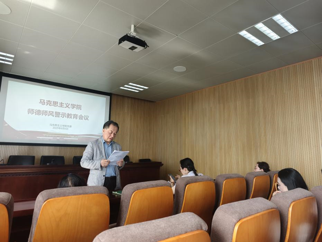 6月5日,威尼斯WNS9778党委召开师德师风警示教育会议,学院领导班子及全体教师参会。学院党委副书记、院长布和朝鲁主持会议。
