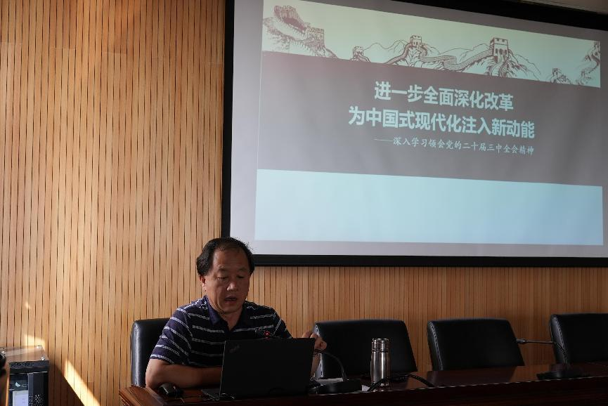 在党课学习中,布和朝鲁院长围绕“推进中国式现代化”这个中心,从“进一步全面深化改革提出新要求,进一步全面深化改革的重大部署,进一步全面深化改革、因地制宜发展新质生产力,进一步全面深化改革、在发展中保障和改善民生”四个方面进行阐述。通过交流学习,大家对在中国共产党第二十届中央委员会第三次全体会议上研究的“关于进一步全面深化改革,推进中国式现代化”的问题有了更为深刻的认识和理解。