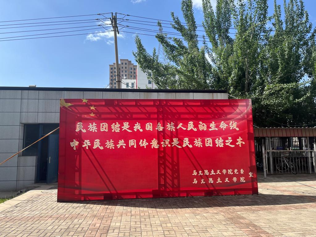 创新宣传载体,提高宣传实效。制作内容为“民族团结是我国各族人民的生命线,中华民族共同体意识是民族团结之本”的宣传展板,大力宣传铸牢中华民族共同体意识。充分发挥学院学科和专业优势,联合党委宣传部、党委统战部成立威尼斯WNS9778“石榴籽宣讲团”,深入学校青年学生中间,广泛开展习近平新时代中国特色社会主义思想、党的二十大精神和铸牢中华民族共同体意识宣讲活动,用小切口反映大政策、用小故事讲述大道理、用小场景承载大主题,以身边人身边事讲述民族团结进步故事,凝聚铸牢中华民族共同体意识的强大合力。思想道德及铸牢中华民族共同体意识党支部举办理论分享主题党日活动,该教研室青年教师李乌云嘎就如何将铸牢中华民族共同体意识融入到各门思政课与教研室老师深入交流讨论。学院研究生党支部与内蒙古财经大学旅游学院学生党支部联合开展“品红色文化,育时代新人”主题党日活动,前往呼和浩特大青山红色主题公园参观学习,并围绕党的二十大精神、习近平新时代中国特色社会主义思想、习近平总书记关于青年工作的重要论述深入交流,校际间熔铸起思想沟通的桥梁,共铸牢中华民族共同体意识。