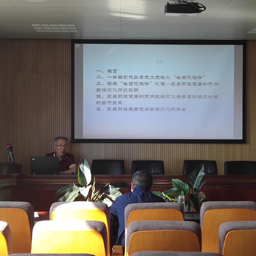 闫安教授从绪言、一些国家地区老党大党陷入“塔西佗”陷阱、破解“塔西佗”陷阱之道——发展积极健康的党内政治文化历史实践、发展积极健康的党内政治文化指导原则与应处理的若干关系、发展积极健康党内政治文化的体会等五个方面对习近平总书记关于发展积极健康的党内政治文化观进行了阐释,得到了广大师生的普遍认同。