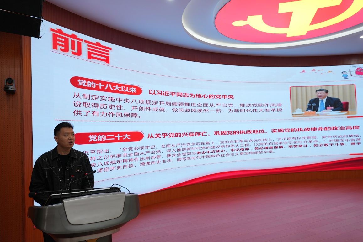 读书班上,韩浩磊老师详细介绍了中央八项规定的由来,深入阐述了中央八项规定精神的实质。他强调,本次学习是要领会中央八项规定的精神实质,其核心是厉行勤俭节约、反对奢侈浪费和奢靡之风、廉洁从政、工作作风务实等。这些精神实质为党员干部的行为划定了红线,明确了作风要求。违反中央八项规定精神问题,主要表现为形式主义、官僚主义、享乐主义、奢靡之风。最后,韩老师通过案例分析,使党员同志们更加清晰地认识到中央八项规定精神的严肃性和重要性。